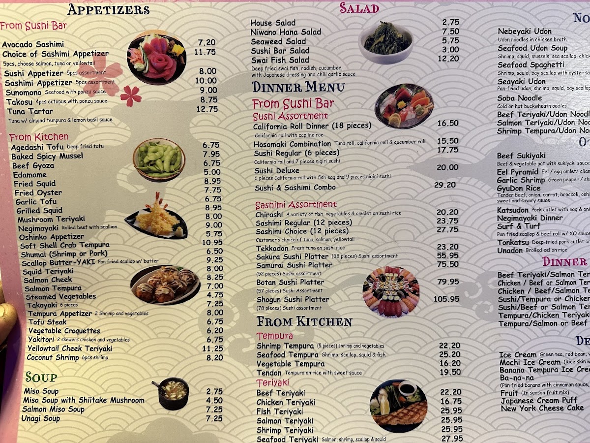 Niwano Hana, located in the heart of Rockville Pike, is a celebrated Japanese restaurant renowned for its exceptional sushi and welcoming ambiance. The lunch menu showcases an array of specialty rolls, including the delectable Almendras Roll, featuring shrimp tempura and almond, alongside the satisfying Dynamite Roll—a spicy blend of tuna and salmon. For those dining with a crowd, the party platters offer generous samplings, like the Samurai Sushi Platter with 52 pieces of sushi artistry.